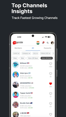 Channel Insights – Discover which channels are gaining the most subscribers and views (country-wise and worldwide).