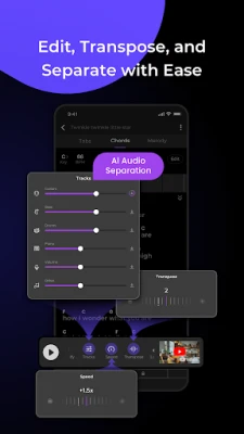 Engage with your favorite tunes like never before. Edit, transpose, and separate vocals & instruments with ease, tailoring your music learning experience to your style.