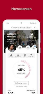 Race The Globe is corporate wellness app created for Marriott Hotels to engage their Associates that choose to participate with Stepathlon.It is a fun, engaging and interactive race around a ‘virtual world’, which motivates and encourages you to be more active every day. You can access health and fitness information, fun fitness contests and challenges and other exciting and inspirational content to help you make healthy choices and change your lifestyle for the better.