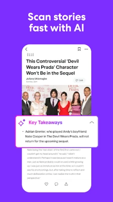 QUICK AI TAKEAWAYS: AI-generated, scannable, bulleted takeaways for articles make it easy to get the most important elements of a story in an instant. Harnessing the power of AI, users can quickly browse the key points of stories and stay in the know.